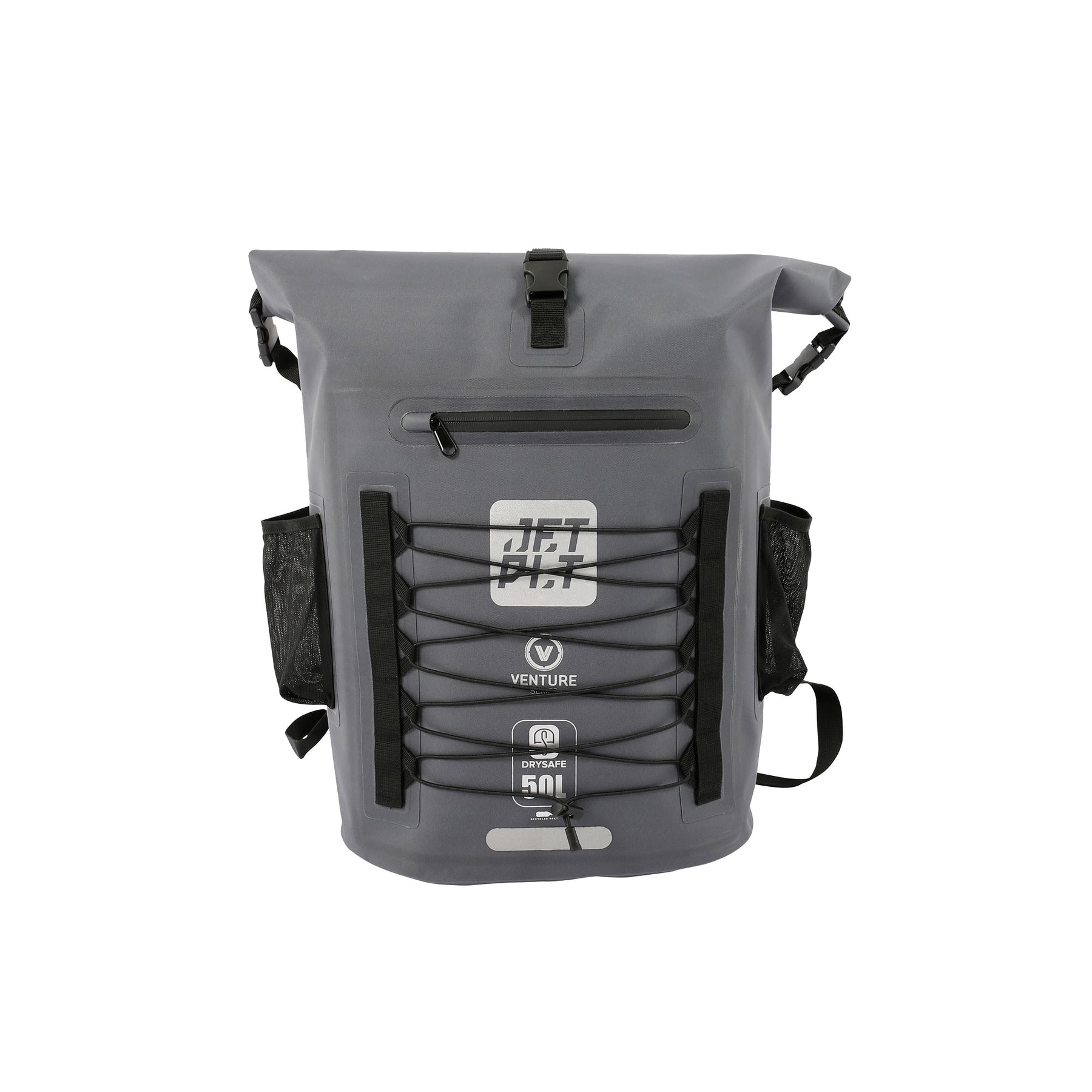 Jetpilotin 50L Venture DrySafe reppu on kunnollinen tukeva selkäreppu, jossa täysin vesitiivis(IPX6), iso 50 litran päätasku. Repussa lisäksi pienempiä ulkotaskuja esim. juomapullolle ja muille varusteille. Reppu on valmistettu erittäin kestävästä 600D -PET kierrätysmateriaalista, joka paitsi kestää 100% vettä, niin kestää myös käyttöä ja kulutusta todella hyvin.